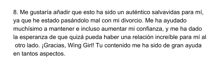 "Solo quiero dar un GRAN GRACIAS por ofrecer una forma de coquetear y hablar con mujeres sin manipulaciones, que además me mantiene fuera de la friendzone.